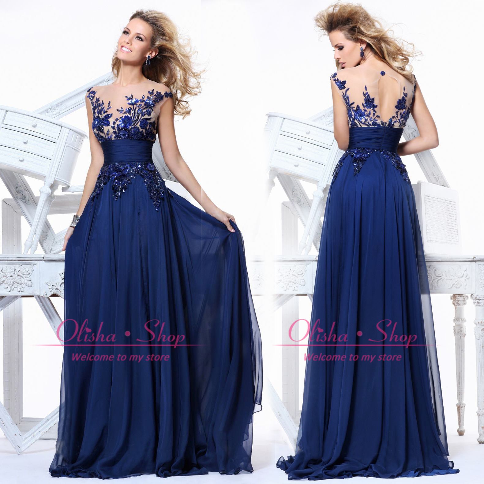 Custom Made Dark Blue Mermaid Evening Dresses Best Sale Sheer ...
