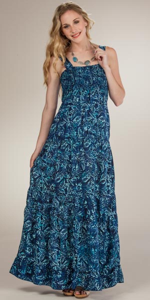 Batik Sundress - Maxi Tropical Bali Batiks Smocked Sleeveless ...